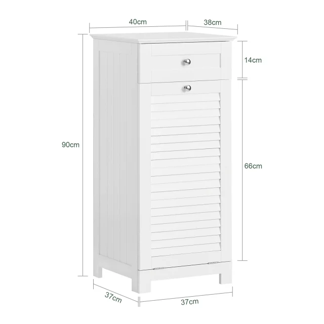 Ima omaro s predalom in skrito košaro za perilo, zato je praktičen dodatek za vsako kopalnico.