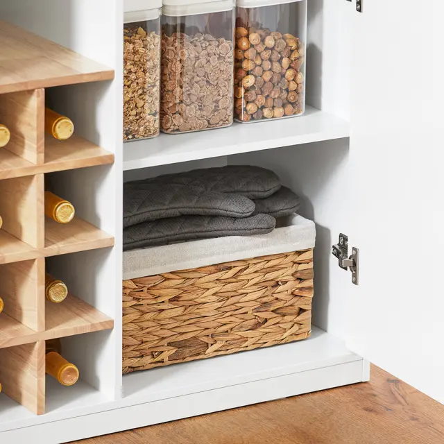 Ta omara ima tudi stojalo za vino in viseče odlagališče za kozarce. V njej lahko shranite 8 steklenic vina in 6 kozarcev za vino.