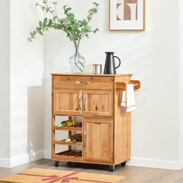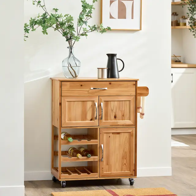 SoBuy kuhinjski voziček iz masivnega lesa s kolesi je večnamenska rešitev za organizacijo in shranjevanje.