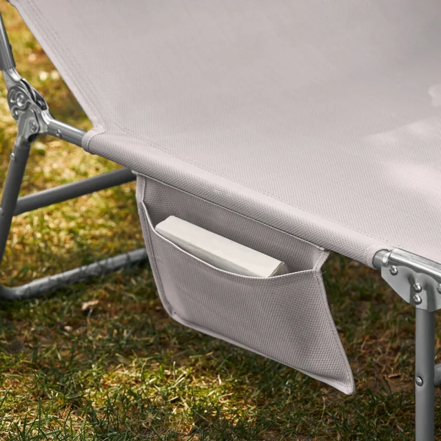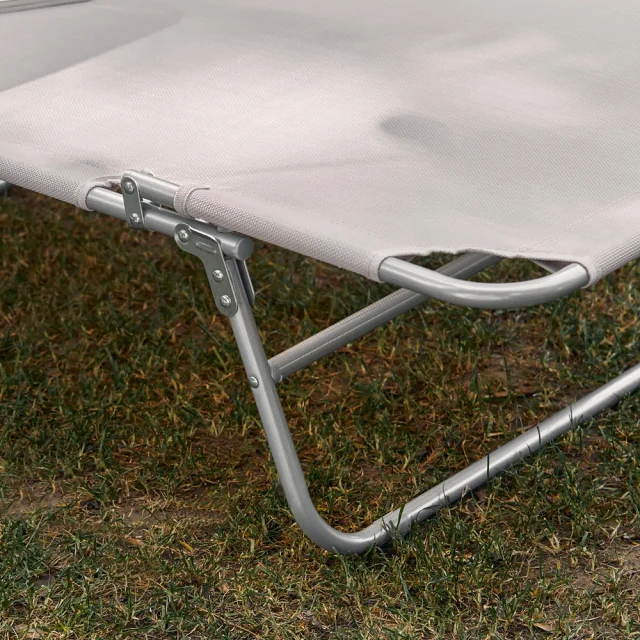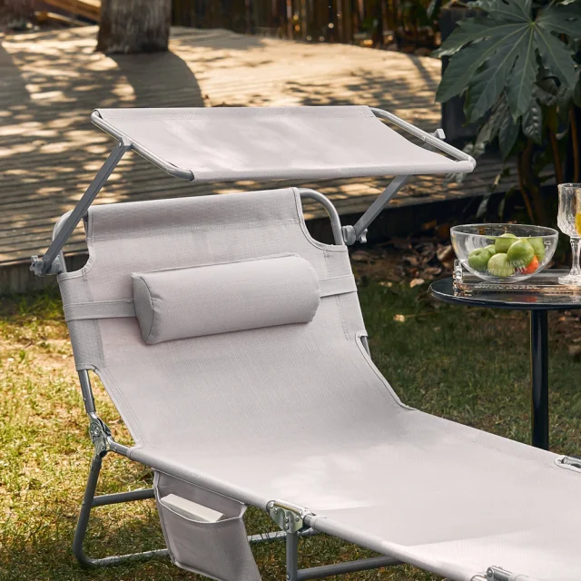 SoBuy Nastavljiv zložljiv ležalnik za sončenje s senčnikom v bež barvi v obalnem slogu