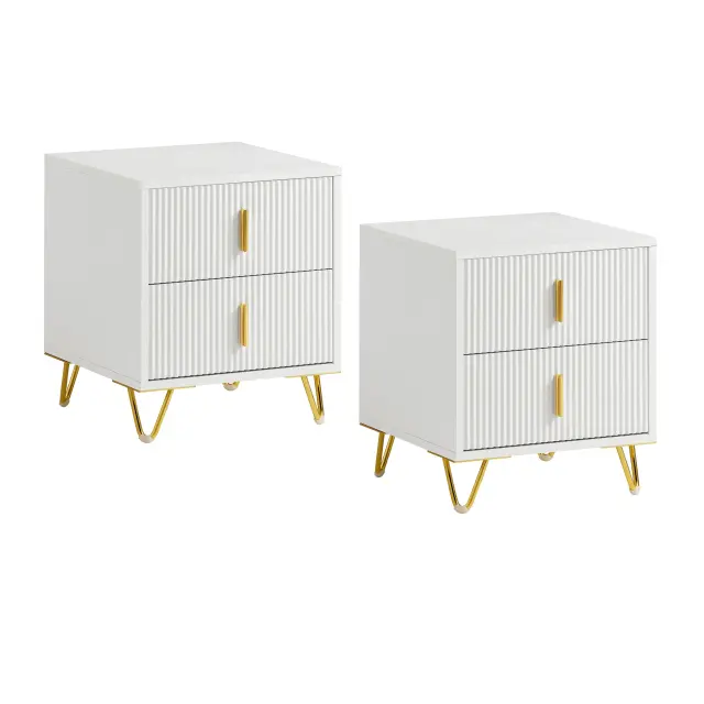 Kovinske noge v zlati barvi ne le poudarijo modernega videza, temveč zagotavljajo tudi izjemno stabilnost pri vsakodnevni uporabi. Trdna konstrukcija iz MDF/PB materiala brez problema prenese obremenitve do 25 kg.