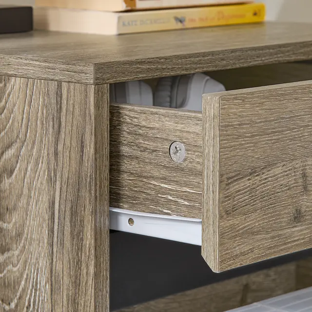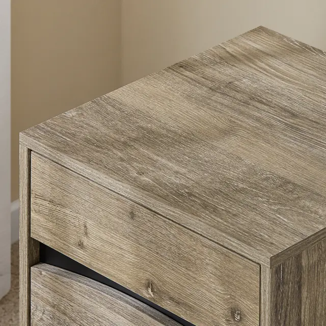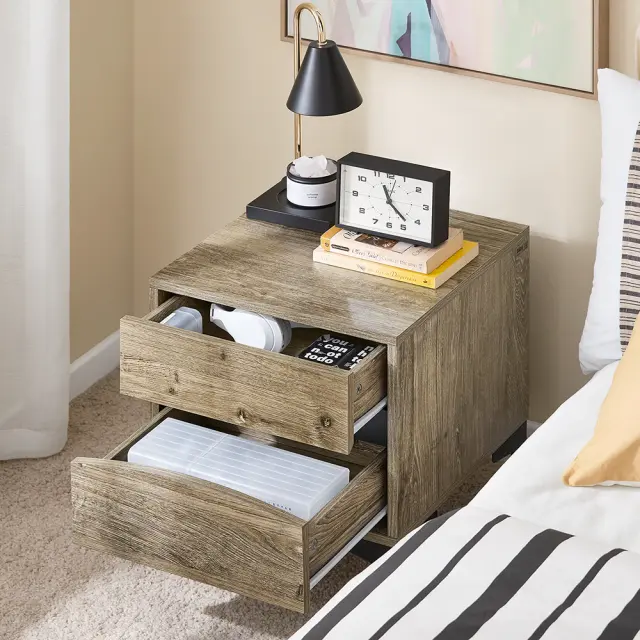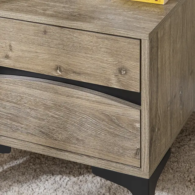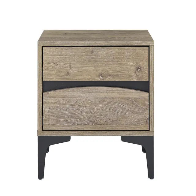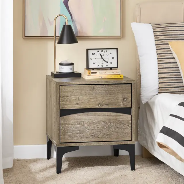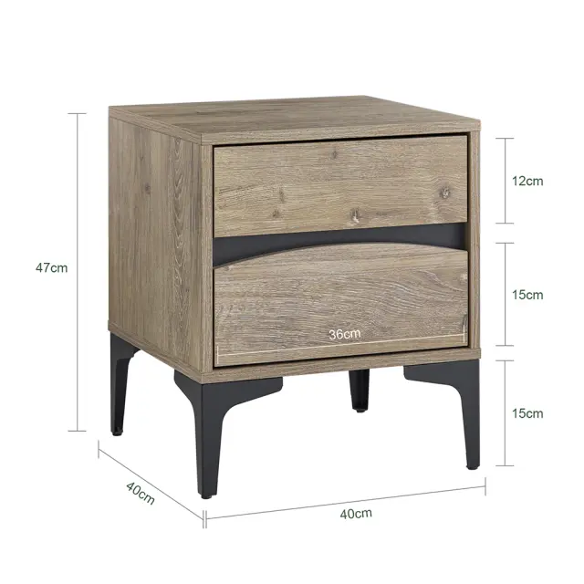 SoBuy nočna omarica z 2 predaloma, ukrivljeno sprednjo stranjo, lesenim videzom in kovinskimi nogami