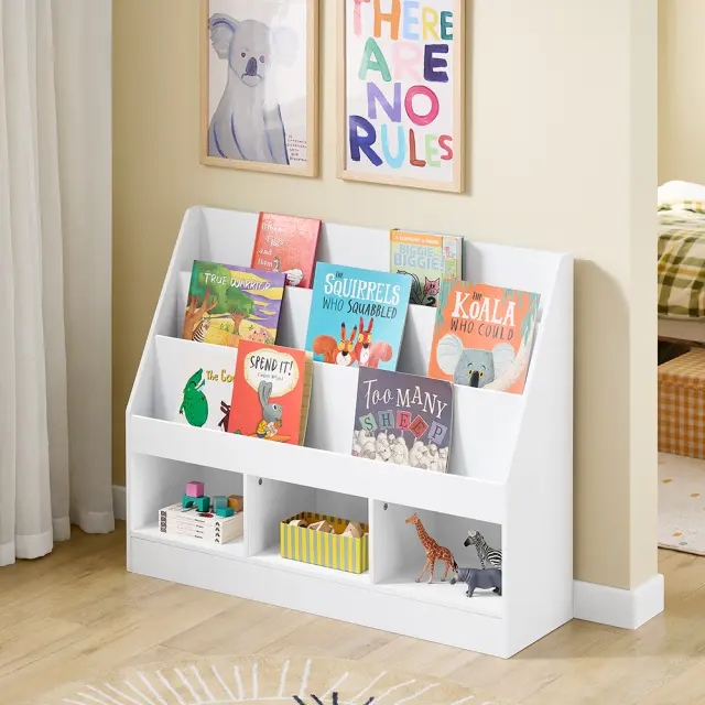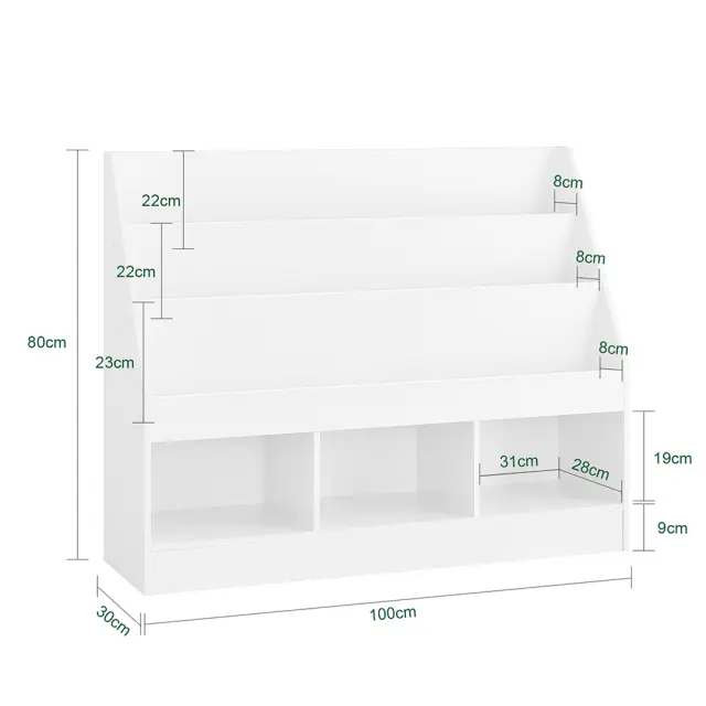 SoBuy Otroška Knjižna Polica z 3 Predali in Držalom za Revije Bela 100x30x80 cm