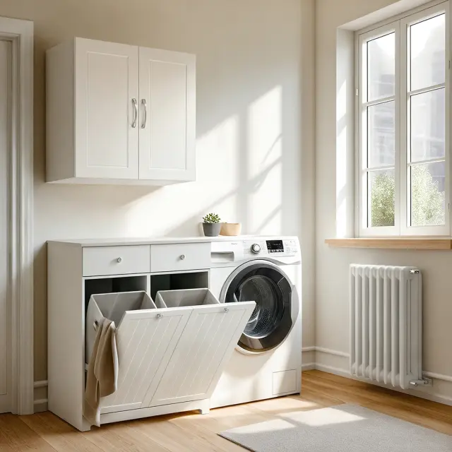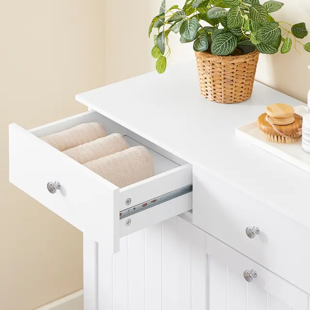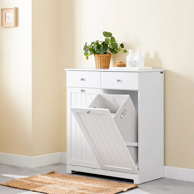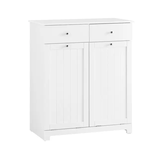 SoBuy Perilni koš z 2 predaloma Bela 78x38x90cm Funkcionalen BZR33-II-W