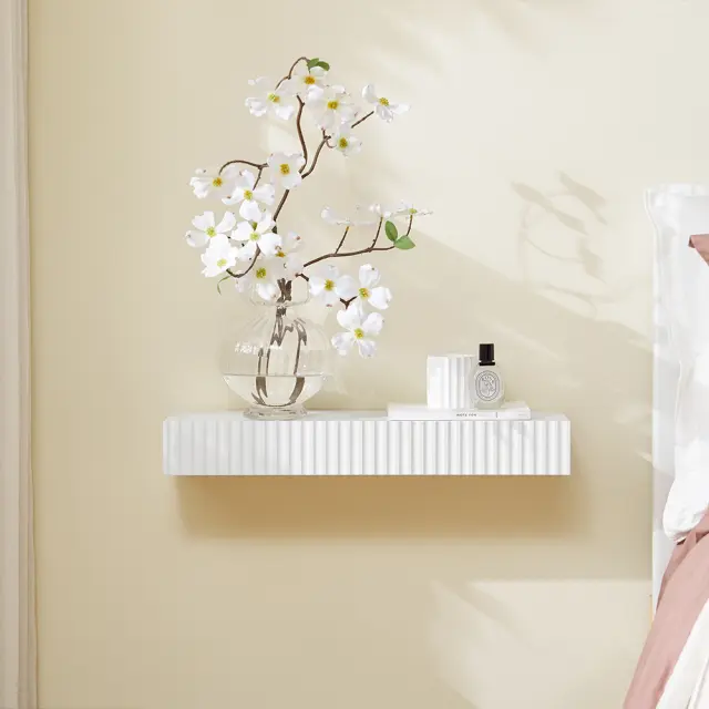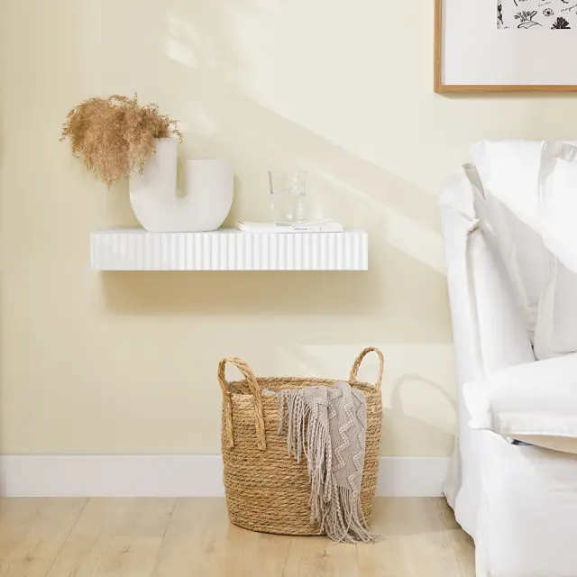 Ta elegantna polica združuje funkcionalnost in sodobno estetiko. Njene čiste linije se odlično dopolnjujejo s prostori, kot so predsoba, hodnik ali dnevna soba. Valovita sprednja stran predala doda edinstven pridih značaja.