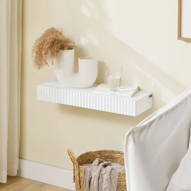 Moderna stenska polica s predalom in LED osvetlitvijo za vsestransko uporabo v vašem domu. Njen minimalistični dizajn se odlično prilega vsakršni notranjščini.