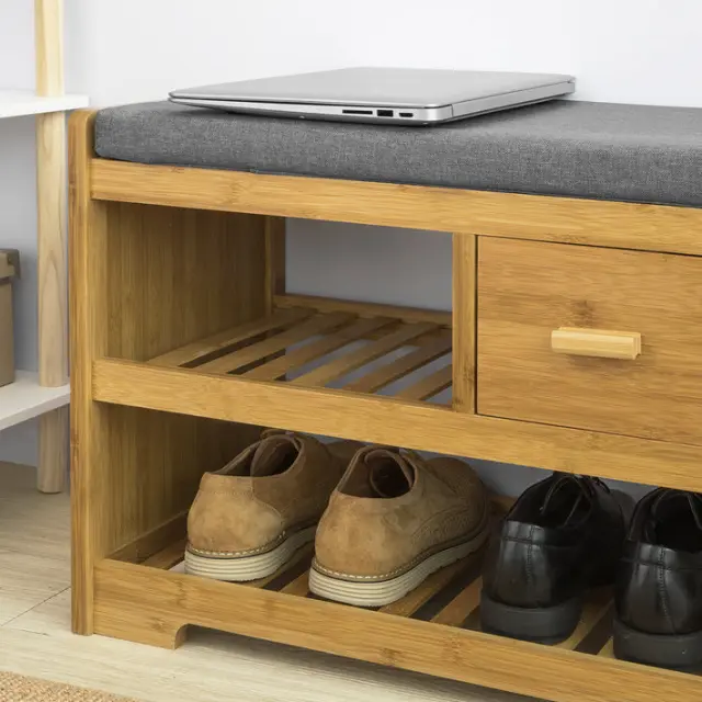 Sodobno oblikovano stojalo za čevlje, ki ponuja shranjevanje čevljev in tudi dodaten prostor za sedenje, dobra izbira za hodnik, dnevno sobo in spalnico.