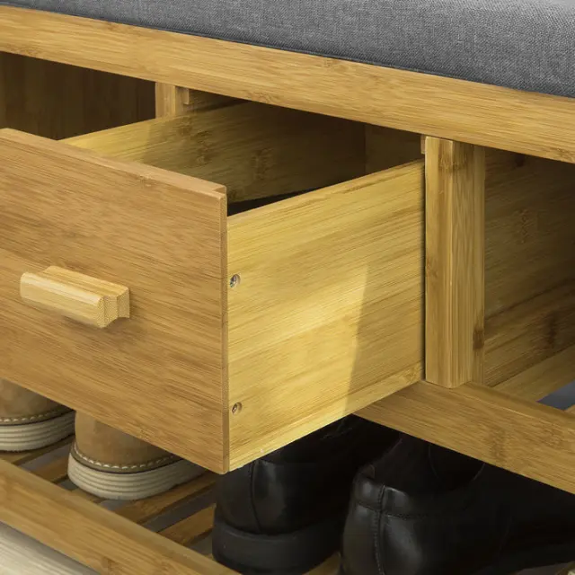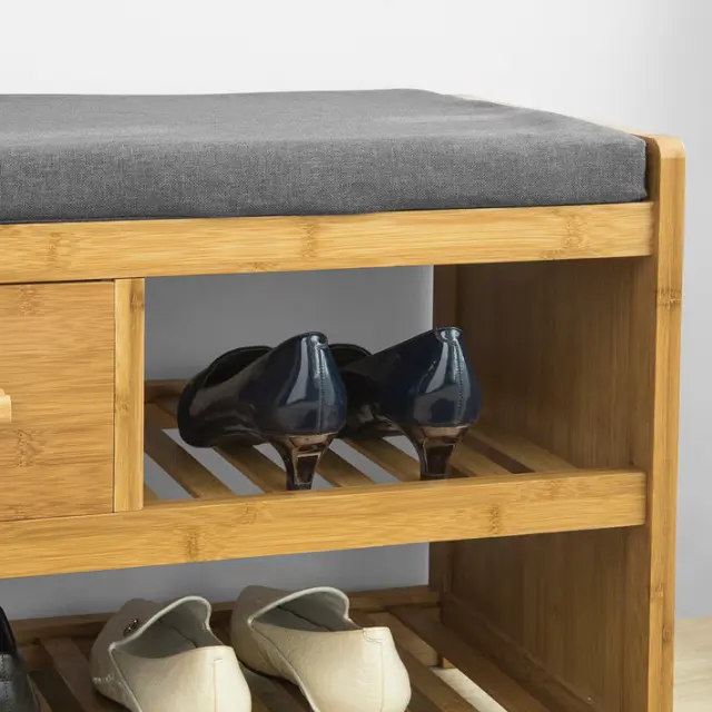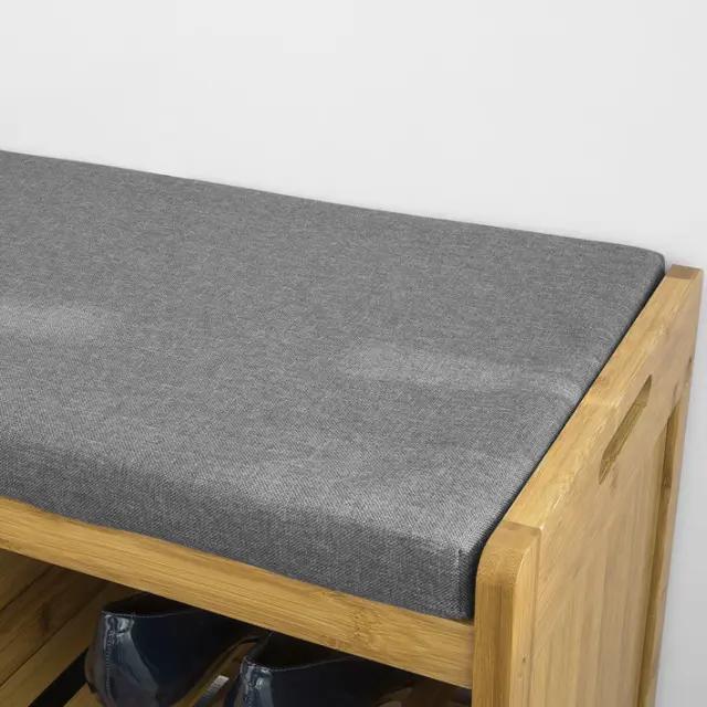 Na vrhu je siva blazina za udobno sedenje med obuvanjem in obuvanjem.