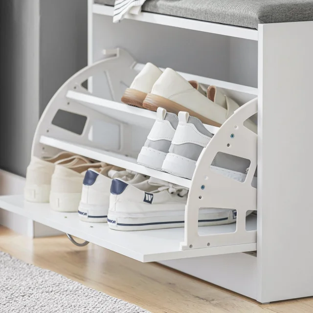 SoBuy predsoba klop za čevlje s sedežem v beli barvi v stilu minimalizma
