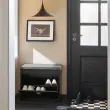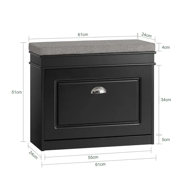 Sodobno oblikovana omara za čevlje z mehko oblazinjeno blazino je dobra izbira za hodnik, dnevno sobo in spalnico.