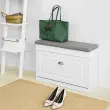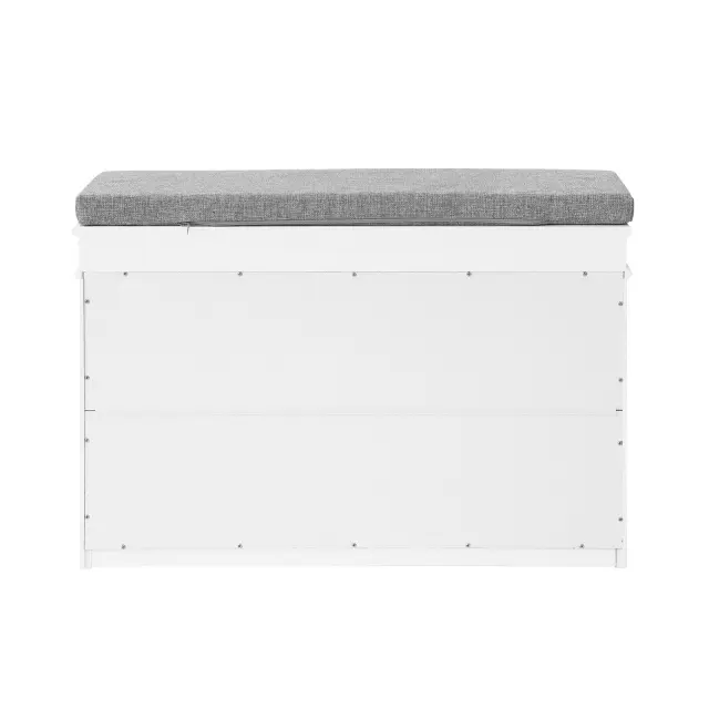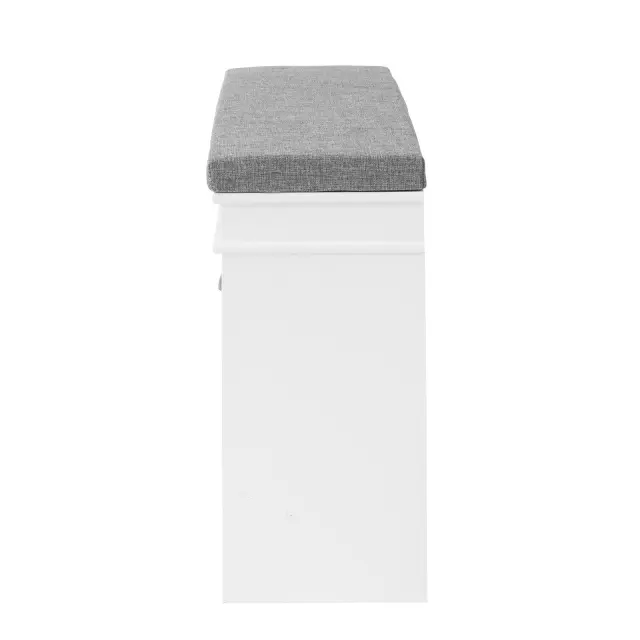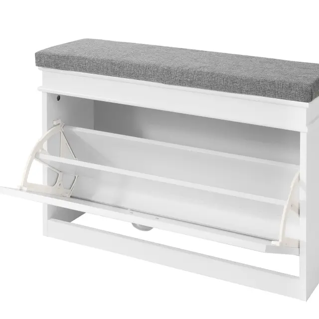 Sodobno oblikovana omara za čevlje z mehko oblazinjeno blazino je dobra izbira za hodnik, dnevno sobo in spalnico.