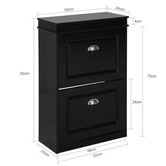 Zagotavlja prostor za shranjevanje čevljev z dvema preklopnima predaloma. Za vsak predal sta na voljo 2 vrsti prostora.