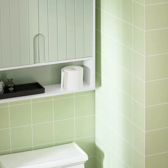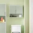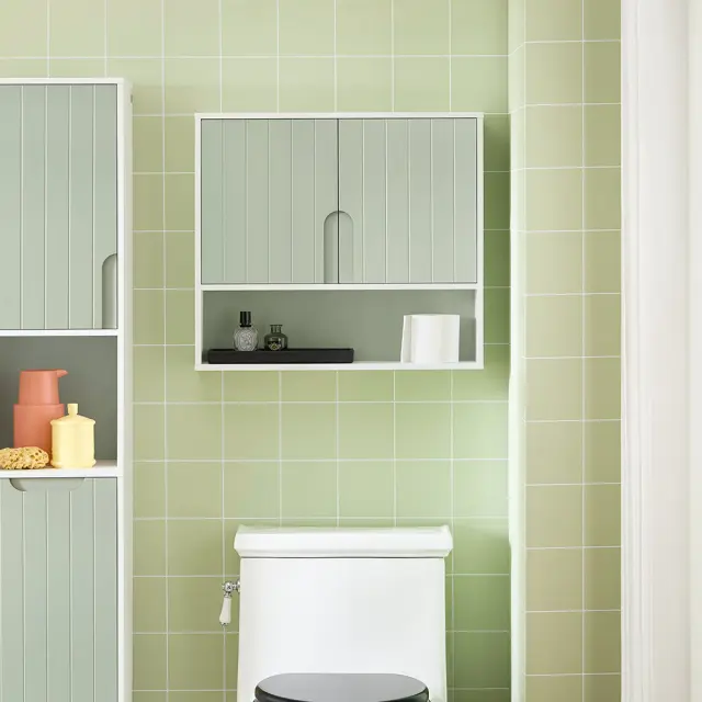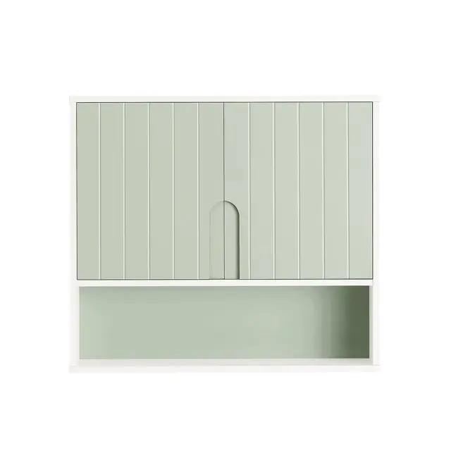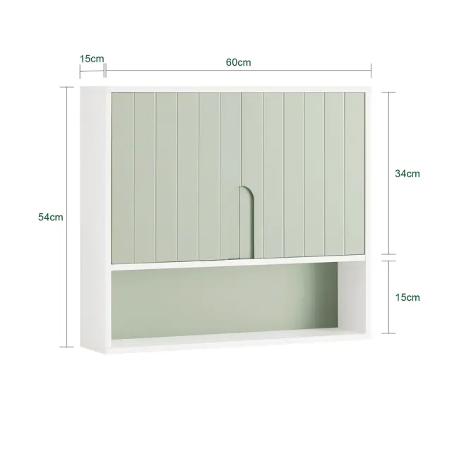 Sodobno oblikovana stenska omarica v beli in svetlo zeleni barvi bo v vašo kopalnico vnesla svež in naraven videz ter jo lepo uredila.