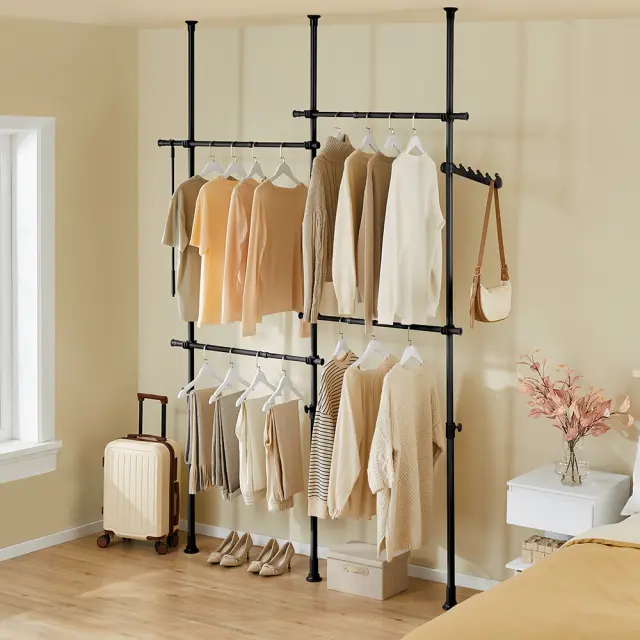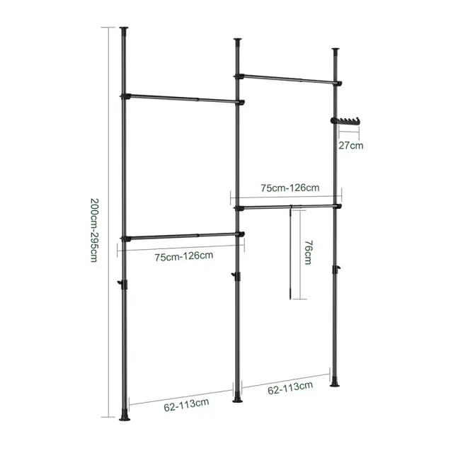 SoBuy Teleskopski Talni Obešalnik, Nastavljiva Garderobna Palica, Črna