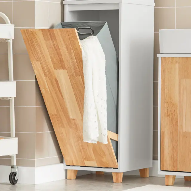 Zahvaljujoč skriti košari za perilo lahko vaše umazano perilo izgine za zaprtimi vrati.