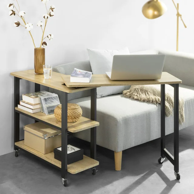 SoBuy vrtljiva stranska mizica v barvi lesa v industrijskem slogu
