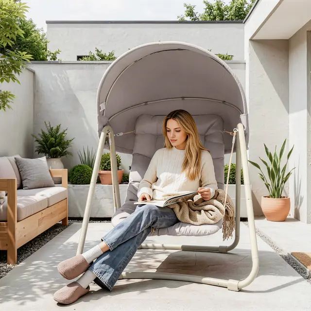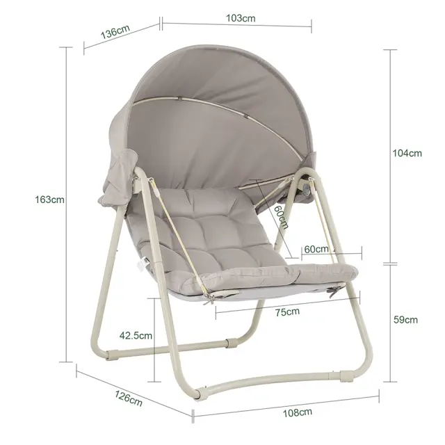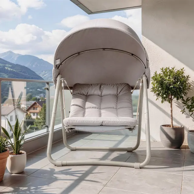 Odkrijte popolno zvezo med sproščanjem in dizajnom s to elegantno vrtno gugalnico. Idealna je za uživanje v mirnih trenutkih na terasi ali v vrtu.