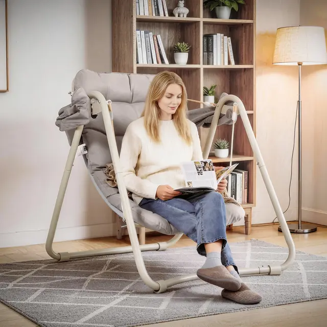 Ergonomska oblika sedeža popolnoma podpira hrbet, obilno oblazinjeni blazniki pa zagotavljajo izjemno udobje. Guganje je vedno tekoče in nadzorovano.