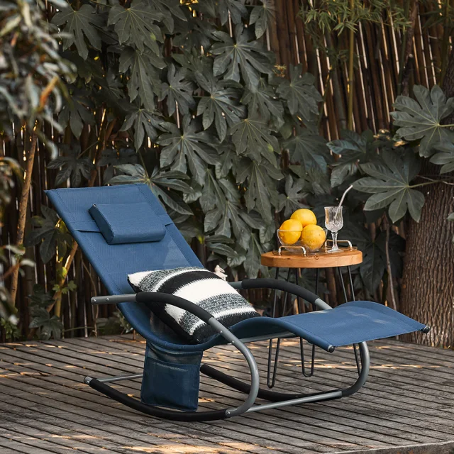 SoBuy zunanji vrtni gugalni stol s stransko torbo v temno modri barvi v obalnem slogu
