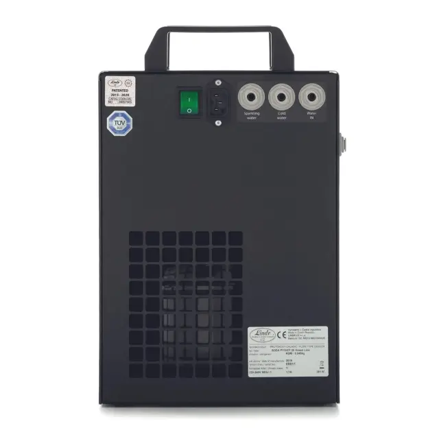 Tehnične specifikacije vključujejo kompresor moči 1/8 HP ali 310 W, kar zagotavlja maksimalno hlajenje 25 litrov na uro. Neprekinjeno lahko oskrbuje 20 litrov na uro, kar je dovolj za večino poslovnih potreb. Naprava podpira pripravo dveh vrst ohlajenih pijač hkrati, vključno z gazirano vodo s stopnjo 20-25 l/h. Poraba energije je optimizirana na 391 W, hlajenje pa temelji na okolju prijaznem plinu R290. Deluje na napetosti 220-240 V pri 50 Hz.
