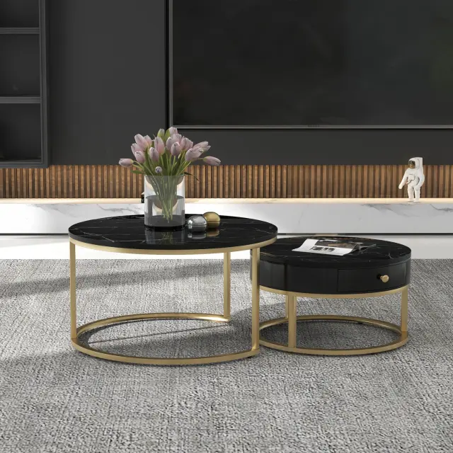 Sodoben komplet klubskih mizic - visok sijaj, marmorni vzorec, 2 okrogli mizici