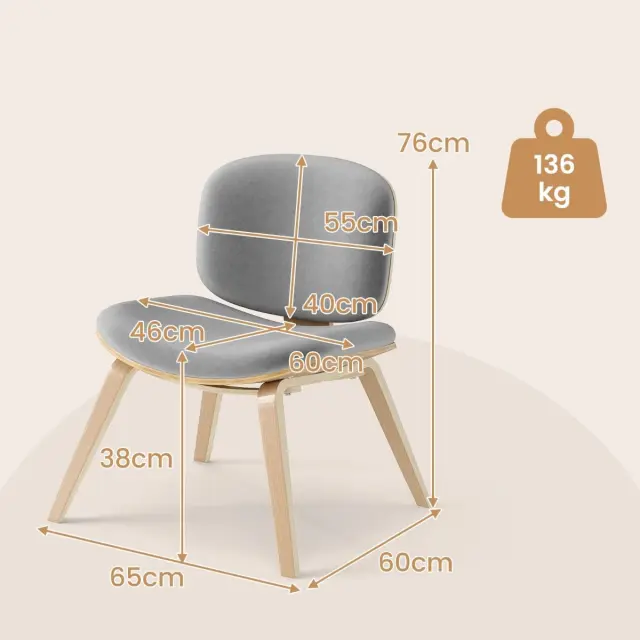 Robusten okvir iz upognjenega lesa: trden okvir iz upognjenega lesa in ojačano naslonjalo zagotavljata izjemno stabilnost in trpežnost. Nedrseče podloge za noge zagotavljajo dodatno stabilnost in ščitijo tla pred praskami.
