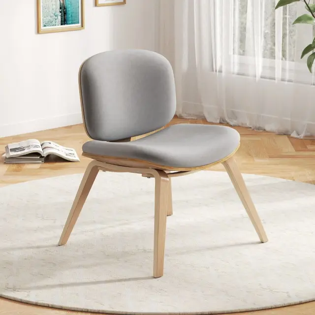 Širok spekter uporabe: Zaradi lesenega okvirja in sive blazine se naglasni stol brez težav zlije z različnimi slogi notranjosti. Uporablja se lahko v kuhinjah, jedilnicah, dnevnih sobah in še kje.