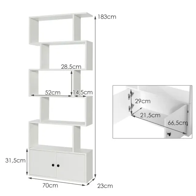 Sodobna sobna knjižna omara z omarico in policami 70 x 23 x 183 cm