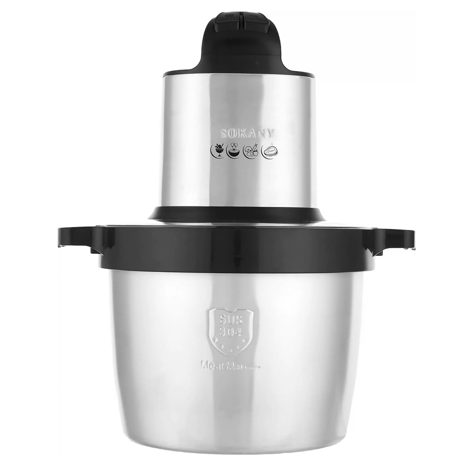Sokany, Električni Sekljalnik Inox Posoda 2L za Meso Zelenjavo Dvojna Rezila Močan, Črna / Srebrna