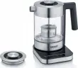 Električni grelnik vode Graef WK350 z modernim in elegantnim dizajnom. Prostornina 1 liter in moč 2000 W, idealen za ljubitelje čaja. Opremljen z zaslonom na dotik za nastavitev temperature glede na vrsto čaja za optimalen okus. Ohišje je iz Schott Duran® stekla z zaključkom iz nerjavečega jekla. Vključuje odstranljiv filter za čaj iz nerjavečega jekla in funkcijo ohranjanja toplote do 30 minut.