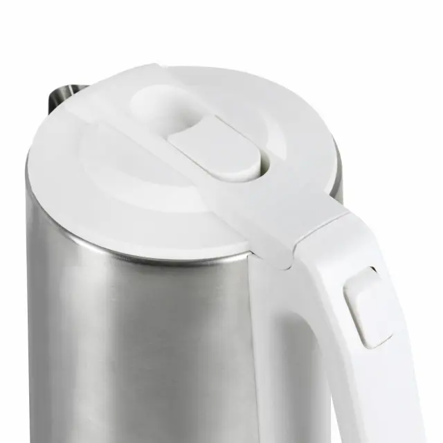 Odkrijte naš eleganten električni kuhalnik vode, ki združuje sodobnost in učinkovitost. S kapaciteto 2 litra in močjo 1500 W omogoča hitro vrenje vode. Njegova zaključna obdelava iz nerjavečega jekla in bele barve se prilega vsakemu kuhinjskemu slogu. Opremljen je z avtomatskim izklopom in zaščito pred pregrevanjem za vašo varnost. Brezžični dizajn in vrtljiva podlaga za 360° povečujeta praktičnost, medtem ko integriran prostor za shranjevanje kabla olajša shranjevanje. Nepogrešljiv pripomoček v vaši kuhinji!