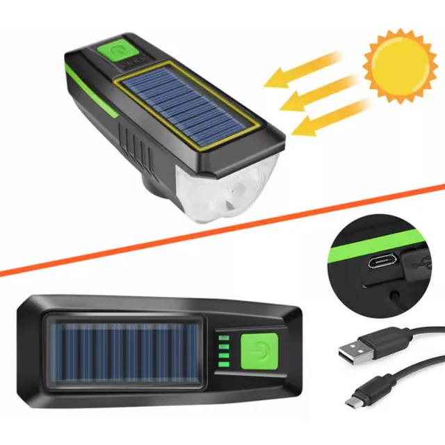 Solarna akumulatorska LED kolesarska svetilka in sirena 2000mAh USB