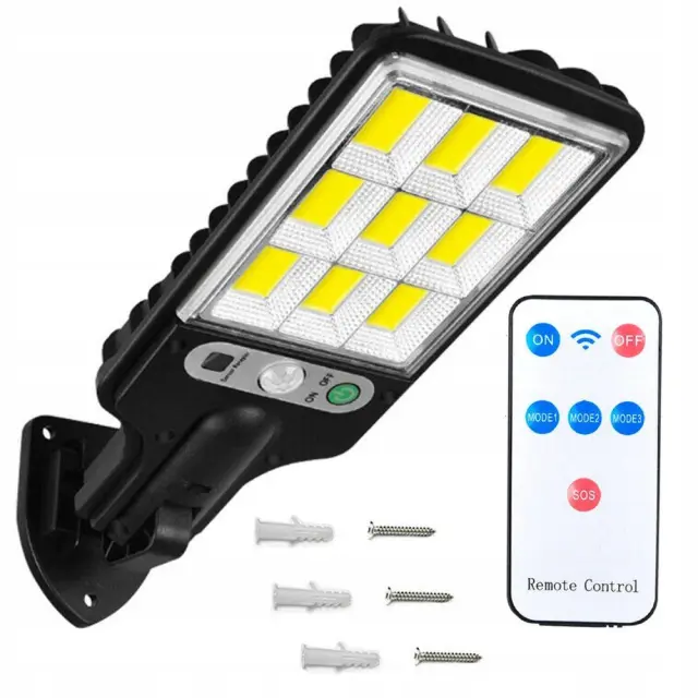 Solarna stenska 108 COB LED cestna svetilka s PIR sezorjem črna + daljinec