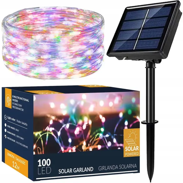 SOLARNE GARLANDE SVETILKE 100 LED VRTNE solarne 12m VEČBARVNE