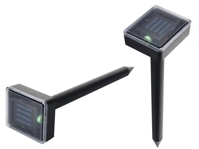 Vgrajena baterija se polni preko sončne celice. S stikalom za vklop / izklop. Frekvenca približno 400 Hz. Delovna površina: odvisno od vrste tal, do max 700 m². Dimenzije (DxŠxV): 380x96x82 mm. 12 mesecev garancije