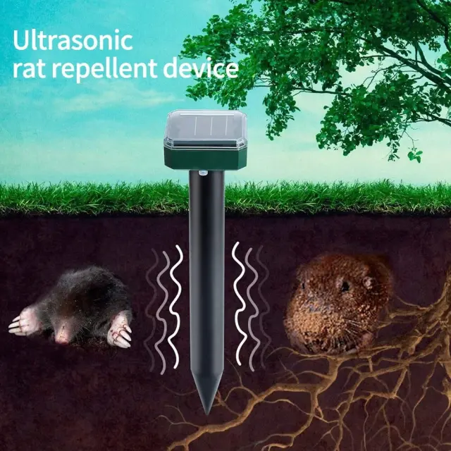 Odganjalec, vstavljen v tla, oddaja zvok s spremenljivo frekvenco 400 – 1000Hz. Glodalci se ne morejo navaditi na napravo,