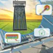 Načelo delovanjaSistem uporablja vakuumske cevi, ki absorbirajo sončno sevanje in ga pretvarjajo v toploto. Toplotna energija se preko sistema Heat-Pipe prenaša v vodni rezervoar. Tudi če se ena cev poškoduje, preostali sistem še naprej učinkovito deluje. Segreto vodo lahko uporabljate za gospodinjske namene ali za podporo ogrevalnemu sistemu. |