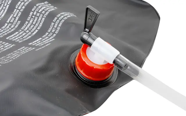 Solarni tuš je izdelan iz nestrupenega PVC materiala. Nastavljiv pretok vode. Z ročajem za obešanje.