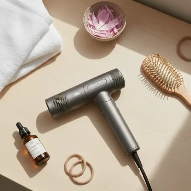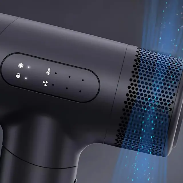 3 nastavitve temperature in 3 nastavitve pretoka zraka, LED zaslon, funkcija za vroče/hladne lase, funkcija samočiščenja in magnetna šoba za oblikovanje – vse, kar potrebujete za prilagodljivo oblikovanje las.