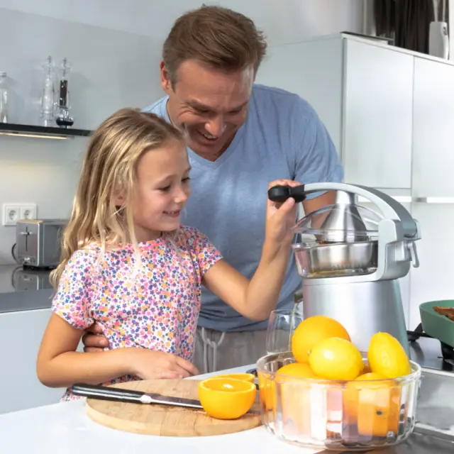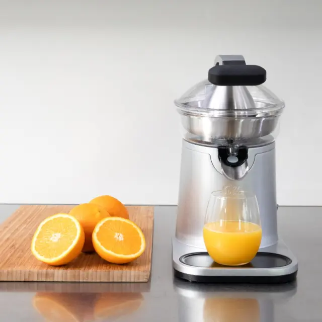Z močnim 230W motorjem je ta stiskalnica za citruse elegantna in učinkovito zasnovana za lahkotno stiskanje soka.