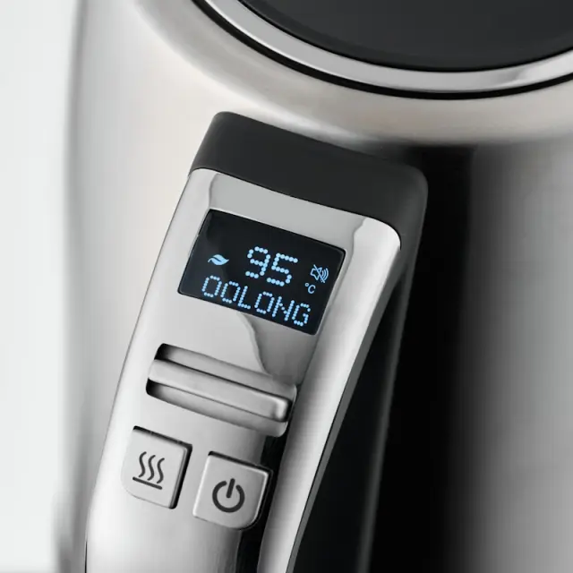 Poslovite se od utrujajočega čakanja na vrelo vodo! Inteligentni zvočni signal vas obvesti, ko je izbrana temperatura dosežena. Vendar to še ni vse – uživajte v udobju briljantnega, lahko berljivega digitalnega zaslona, ki vaše pripravo čaja dvigne na novo raven jasnosti in natančnosti. Zdaj se lahko osredotočite na pomembnejše stvari, medtem ko je vaš čaj strokovno pripravljen.
