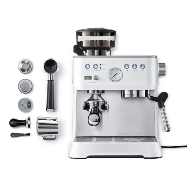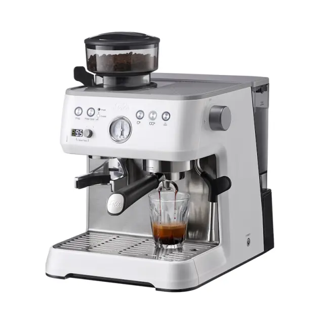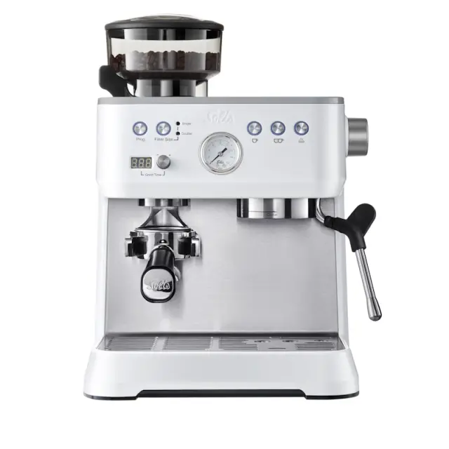 Solis Grind & Infuse Perfetta White je polavtomatski espresso aparat, ki ima vse, kar potrebujete za pripravo popolnega espressa, kapučina ali druge različice kave.
