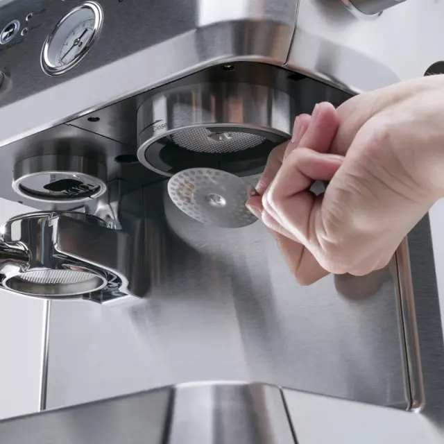 Seveda je to disperzijsko sito enostavno namestiti ali zamenjati in je združljivo z aparati za espresso iz linije izdelkov Solis Perfetta.