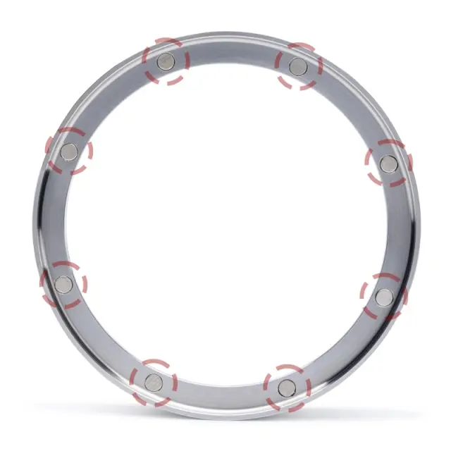 8 vgrajenih magnetov zagotavlja dober oprijem na portafilter.