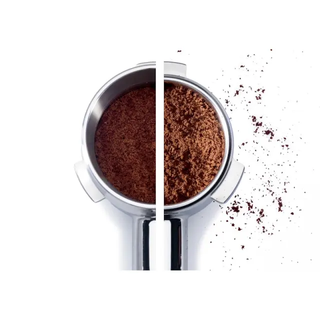 Zadrži mleto kavo v portafiltru, kar poveča natančnost točenja za dosledne rezultate.