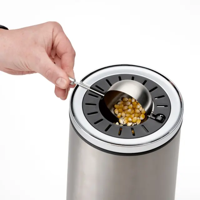 Preprosto dodajte koruzna zrna, obrnite merilno skodelico in pritisnite stikalo.