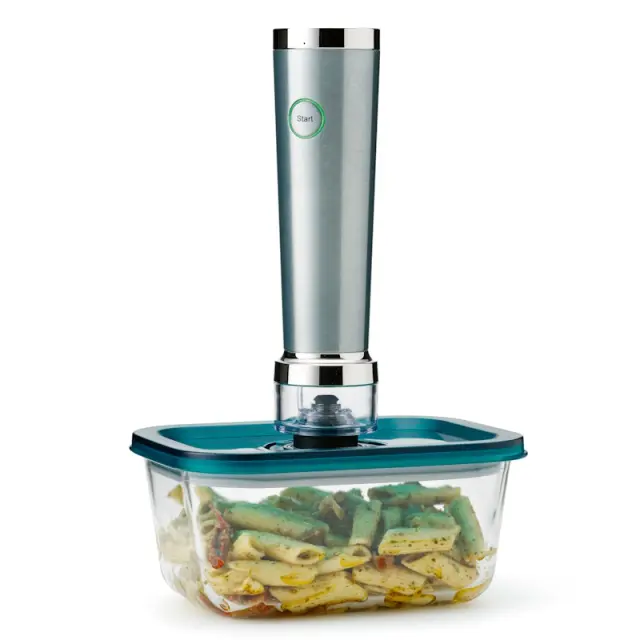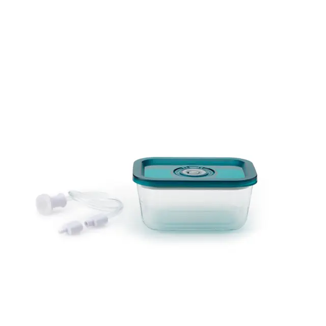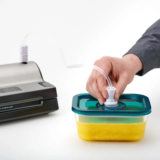 Stekleno vakuumsko posodo Solis s prostornino 700 ml lahko s priloženo vakuumsko cevjo priključite tudi na vakuumski aparat.