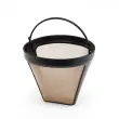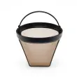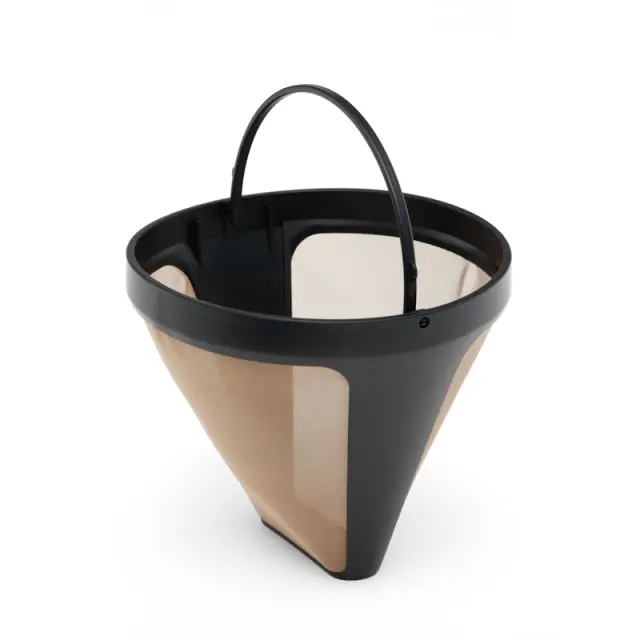 Zlat material zagotavlja optimalno filtracijo kave, zaradi česar so arome bolj intenzivne in vsaka skodelica užitek. Zahvaljujoč fini strukturi filtra neželeni ostanki ne pridejo v vašo kavo – tako ostane aroma polna in čista. Ta trpežni filter za aparat za kavo ni samo praktičen, ampak tudi odlično izgleda v vaši kuhinji. Eleganten zlati dizajn mu daje nekaj posebnega in ga dela privlačno, ne glede na to, ali ga shranite v omaro ali neposredno v pomivalni stroj.