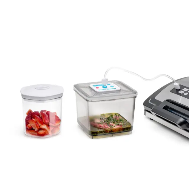 Zelo občutljiva na pritisk ali izjemno tekoča živila lahko vakuumsko zapremo ali celo mariniramo v posodah, ki so na voljo kot dodatna oprema.