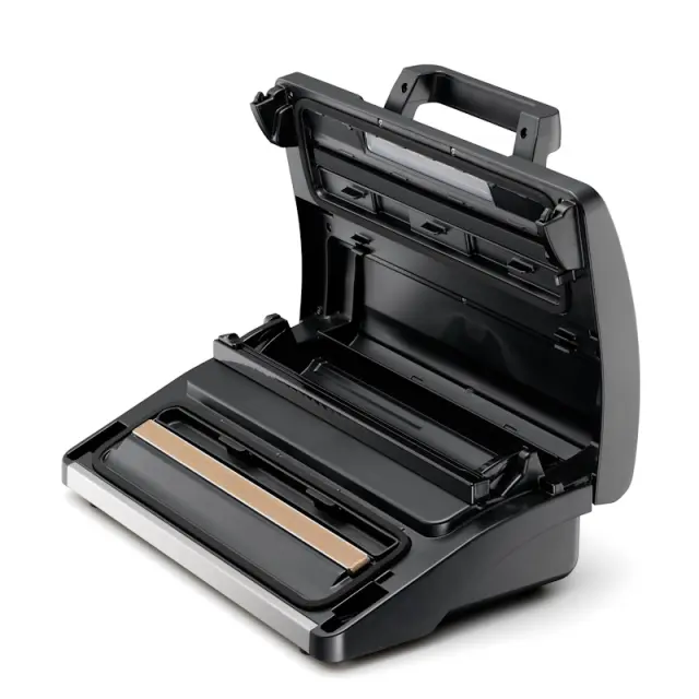 Ohranite svojo hrano dlje časa svežo, zmanjšajte količino odpadkov in uživajte v udobju in vsestranskosti tega inovativnega vakuumskega pakirnega aparata.
